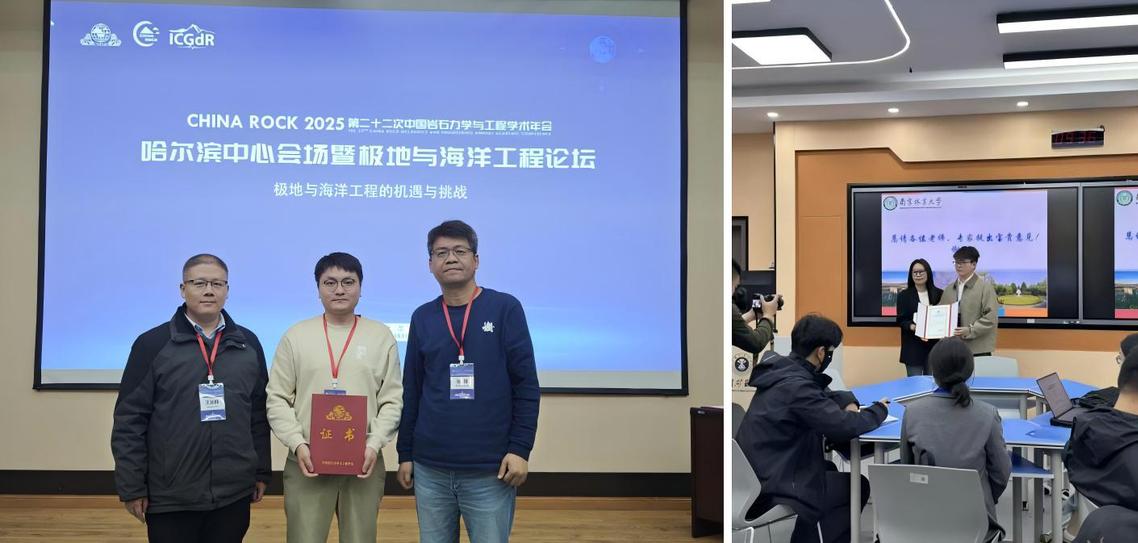 我院承办了“CHINA ROCK 2025南京林业大学卫星会场”,院团委周鹏、瞿娟、建筑工程系蔡光华、刘波等老师参与了筹备和组织工作,线上线下参会人数近200人。此外,我院还作为徐州中心会场(暨第二届江苏省深地能源开发存储与安全大会)及哈尔滨中心会场(暨极地与海洋工程论坛)的协办单位,积极参与多地联动。杨平教授团队博士生唐宇在徐州中心会场青年学者论坛上作了题为“基于X射线CT的细观孔结构与各向异性对粉质黏土强度特性影响研究”的学术报告。