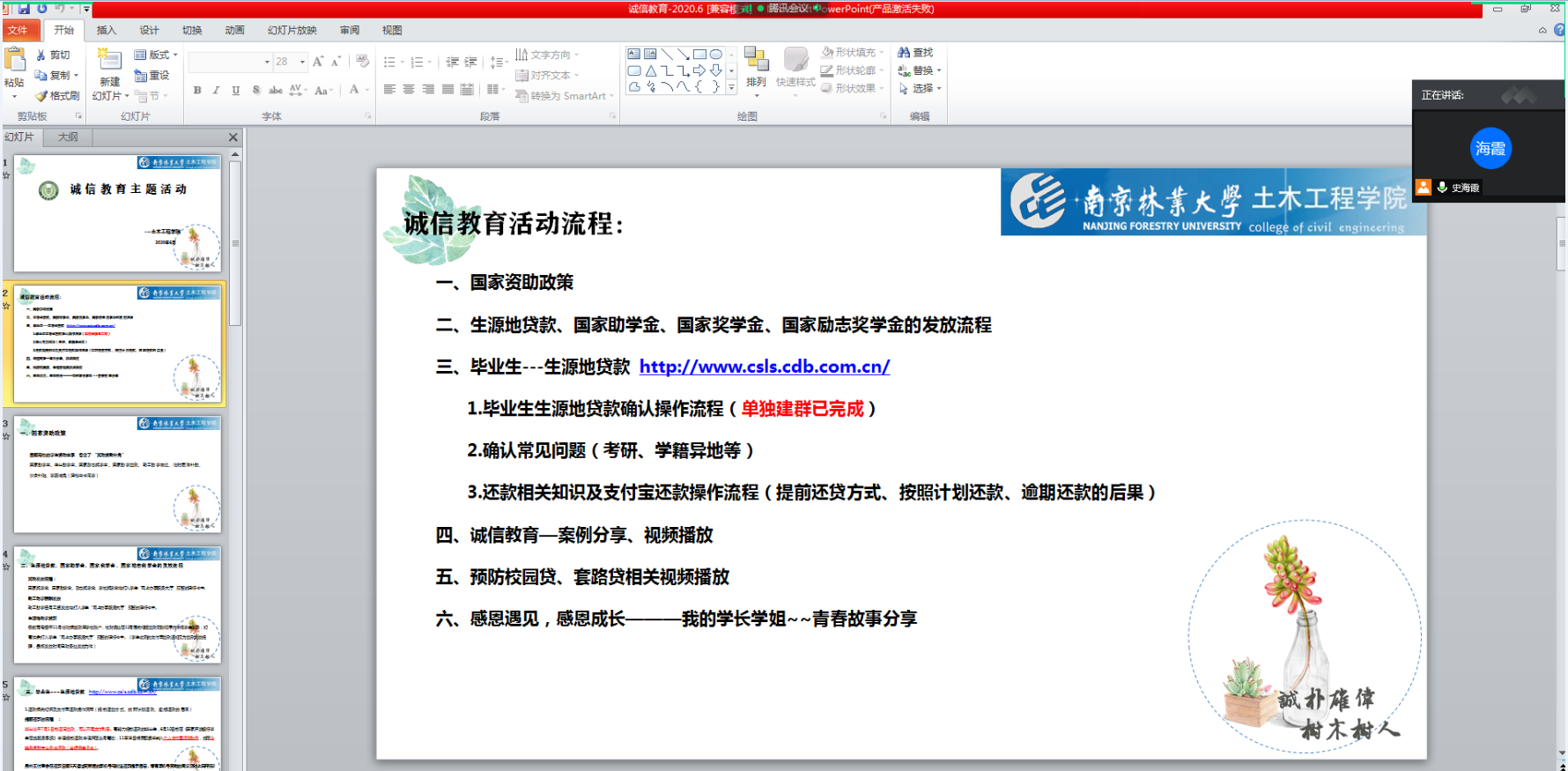 为了增强我院学生的诚信和感恩意识,教育和引导受助学生弘扬诚信,践行诚信;懂得感恩,践行感恩。我院于6月11日上午10:00利用腾讯会议开展诚信教育主题活动暨朋辈分享交流会,土木院全体受资助学生参加了本次会议。
