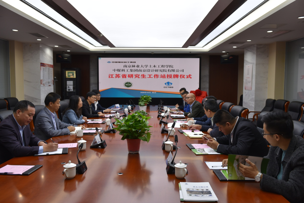 宾主双方还就江苏省研究生工作站的建设、合作课题申报及人才培养展开研讨,整个揭牌仪式会议气氛热烈,经过交流发现很多地方值得校企进一步配合研究。双方都表示积极推进江苏省研究生工作站的建设,希望通过双方的努力,将南京林业大学—中国煤科南京设计院江苏省研究生工作站建设为江苏省优秀研究生工作站。