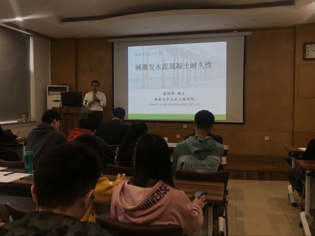 11月2日上午10:00,湖南大学张祖华教授在土木学院报告厅3324,为我院师生做了关于《碱激发水泥混凝土耐久型》的报告。