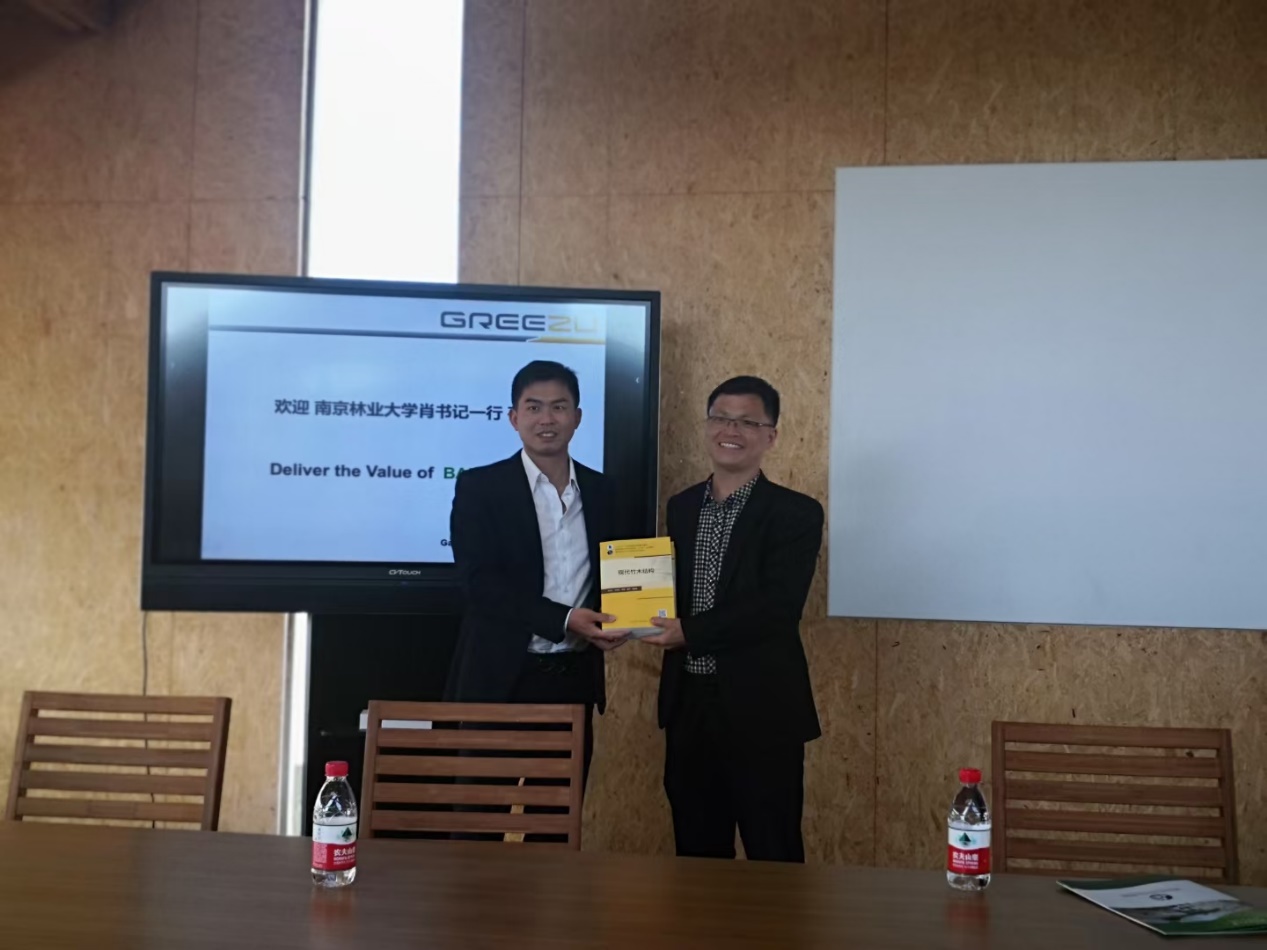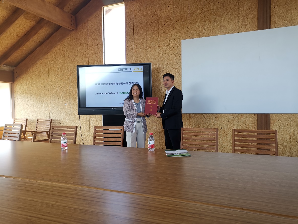 座谈会上,熊振华总经理首先对肖妍玎书记一行的到来表示热烈欢迎,介绍了赣州森泰竹木有限公司的发展历程和中长期发展规划,也对南京林业大学长期以来对公司的大力支持表示衷心的感谢。肖妍玎书记介绍了南京林业大学及土木工程学院在教学科研、人才培养、社会服务等方面取得的成绩,随后双方就创新基地和联合培养基地建设、产学研合作等内容进行了深度交流,双方一致表示将以创新基地和联合培养基地建设为桥梁和纽带,进一步开展全方位的校企合作,努力携手共进、实现校企共赢。肖妍玎书记还向熊振华总经理颁发了南京林业大学研究生校外指导教师聘书,李海涛教授向企业赠送了其主编著的《现代竹木结构》(江苏省“十三五”高等学校重点教材)。