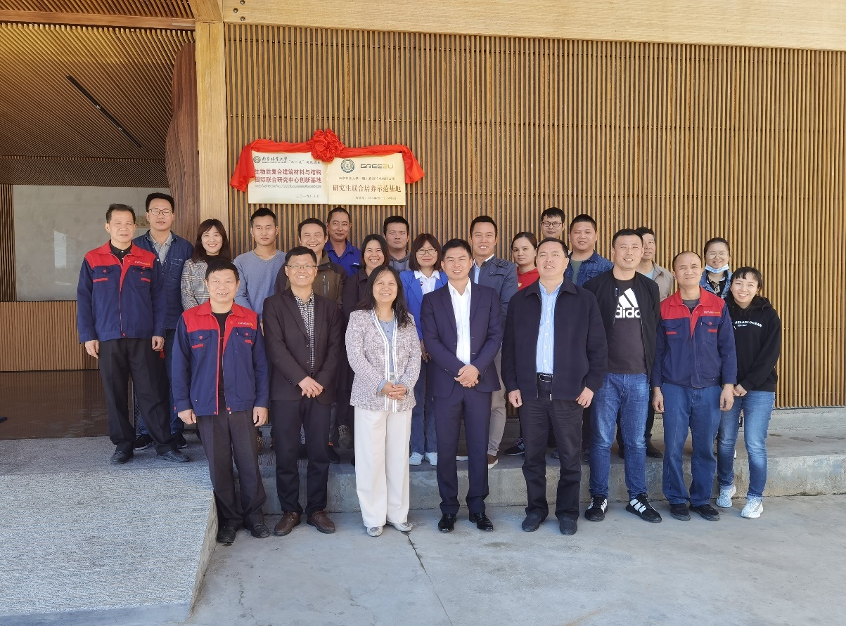 2020年11月13日上午,南京林业大学研究生联合培养示范基地暨南京林业大学生物质复合建筑材料与结构国际联合研究中心创新基地揭牌仪式在赣州森泰竹木有限公司举行。座谈会在公司新落成的竹结构办公大楼3楼会议室进行。南京林业大学土木工程学院党委书记肖妍玎、副院长李海涛、副教授姜元中参与了此次活动。