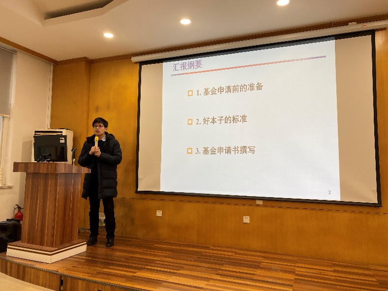 张文华老师首先介绍了科研基金申请前的准备工作。他建议大家大量阅读高水平文献、把握前沿动态,积极总结存在的问题、确定创新点,并整理大概的研究思路。他还详细介绍了科研基金申请书撰写方法,分别对申请书各部分撰写的要点进行详析。最后,他建议大家多模仿成功项目的申请书,多修改自己基金申请书,精益求精。