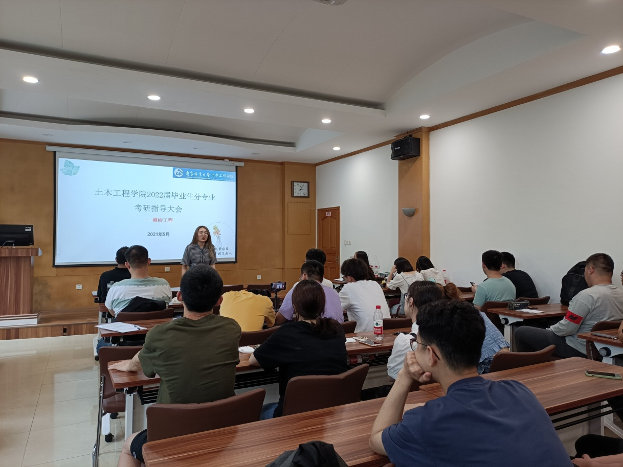 为了调动同学们的考研积极性,帮助大家在目标院校、专业的选择上合理定位并成功上岸,5.10日下午2:00,我院在报告厅3324召开了2020届测绘工程专业毕业生考研指导大会。院党委副书记、副院长柳任飞,测绘工程系主任陈动、2018级辅导员史海霞,2017级优秀学生代表以及测绘工程专业的所有同学参加了此次会议。
