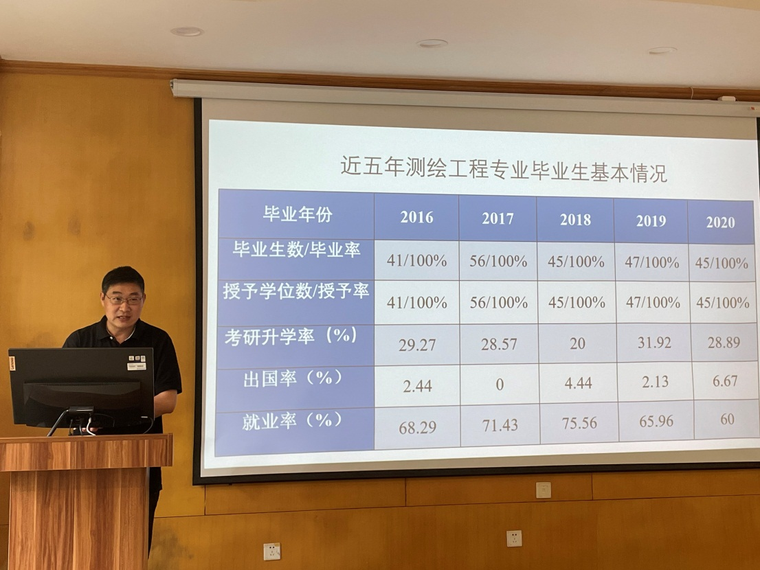 接着,测绘工程系主任陈动老师介绍了近五年来测绘工程专业同学的升学、出国、就业的情况。从近两年来学院研究生的招生和分布情况出发,以考研的目的和意义为重点,分析了专业对应可报考院校的具体情况以及报考本校的优势。希望同学们根据自己的实际情况选择目标院校,努力备考,实现自己的梦想。