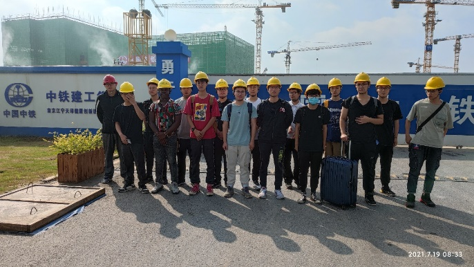7月19日早晨土木工程学院副院长戴兆华、建筑工程系副主任张延泰和交通土建工程系副主任郑开启专程将39名2018级土木工程专业本科生送往中铁建工集团南京分公司的江宁天印健康创新园项目部、江宁无线谷项目部、高淳港区输运体系建设项目部开展为期一个月的生产实习。