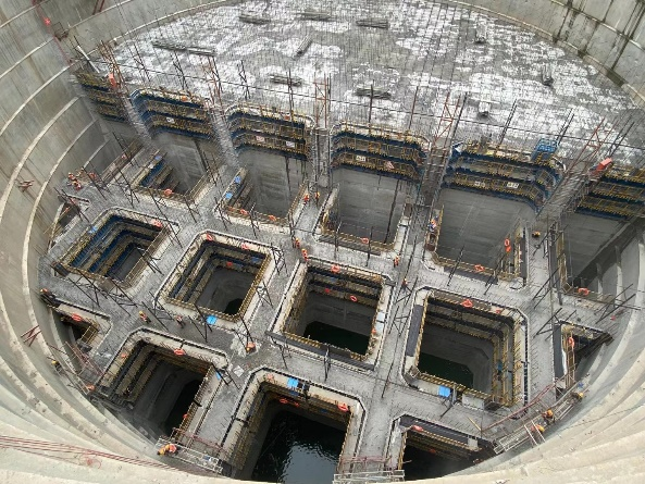 中交二航局南京仙新路过江通道A3标项目经理部郭佳嘉总工对南锚碇的结构特点和施工方法进行了详细讲解。南锚碇作为大桥的重要受力结构,如同力压千金的秤砣,是拉起1760米悬索桥的关键。大桥南锚碇采用地下连续墙基础,外径65米,最大深度63米。锚碇基坑开挖深度57米。南锚碇地下连续墙完成后,将起到防水和抵御土侧压力的作用,为后续锚碇基坑开挖作业及基础施工提供了安全稳定的施工条件。南锚碇底板浇筑施工中采用塔吊加导管、配合混凝土泵车施工的新工艺,实现了底板混凝土的快速、灵活浇筑,避免了大量临时结构的施工,不仅节约了施工成本,也缩短了施工工期。