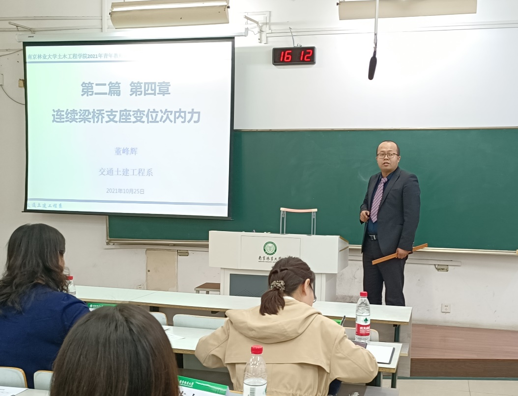 为加强学院青年教师队伍建设,提高青年教师的教学能力和水平,10月25日下午土木学院组织开展了2021年青年教师讲课竞赛及教学观摩活动。学院党委书记肖妍玎、教务处副处长姜琪、学院教学督导组黄新、王元纲、陈红华等专家应邀担任本次讲课竞赛的评委,本次活动由学院副院长戴兆华主持。