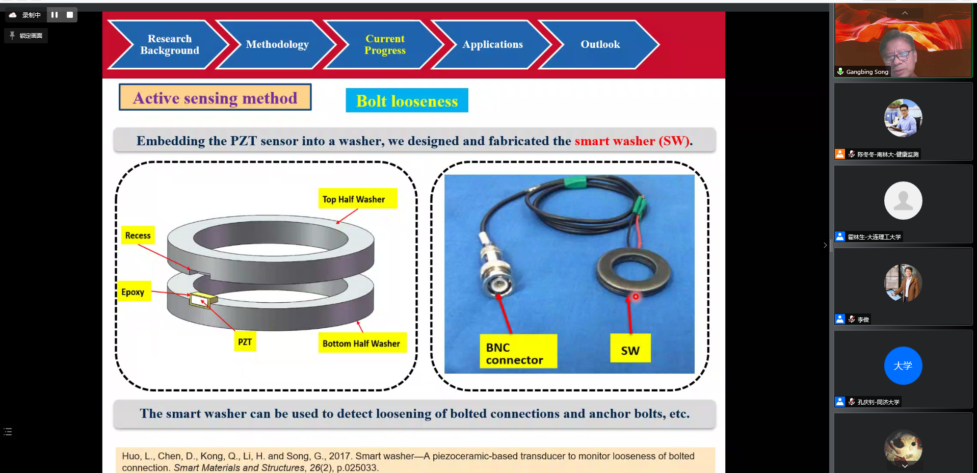 经过建国以来近70年的发展,我国基础设施存量已居世界首位。面对大体量的基础设施,要保证结构的设计使用年限,就必须对工程结构进行高质量的运维与管养。围绕这一主题,本次会议在江苏省教育厅对外合作与交流处的支持下,南京林业大学“水杉”学术讲堂特邀美国休斯敦大学宋钢兵教授,澳大利亚科廷大学李俊副教授,同济大学孔庆钊教授,浙大-UIUC国际联合学院Yasutaka Narazaki副教授,澳门大学阮家荣教授,大连理工大学霍林生教授,湖南大学王文熙助理教授,澳门大学张阳博士,南京林业大学陈冬冬副教授等高校的知名学者进行汇报,为工程结构健康监测与运维理论与方法献计献策。土木学院院长魏洋教授出席了本次活动。