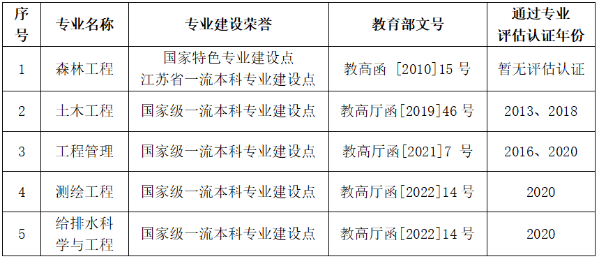 近日教育部印发《教育部办公厅关于公布2021年度国家级和省级一流本科专业建设点名单的通知》(教高厅函[2022]14号),我院给排水科学与工程、测绘工程2个专业双双入选国家级一流本科专业建设点。至此学院5个本科专业全部入选国家或省一流本科专业建设点:其中土木工程、工程管理、给排水科学与工程、测绘工程4个专业入选国家级一流本科专业建设点,森林工程专业入选江苏省一流本科专业建设点。