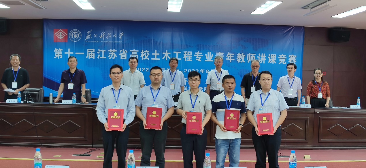 2022年8月20日-22日第十一届江苏省高校土木工程专业青年教师讲课竞赛在苏州举行,本次讲课竞赛由江苏省土木建筑学会教育工作委员会主办,苏州科技大学承办。来自东南大学、河海大学、南京林业大学等省内30多所高校的80余名青年教师参加了比赛。通过激烈的角逐,我院青年教师刘福寿、董峰辉和张延泰老师分别荣获省特等奖、省一等奖和省二等奖。