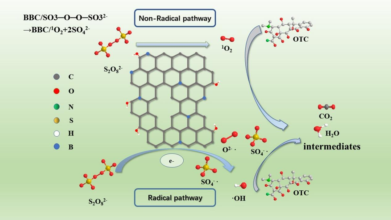 图1 过硫酸盐活化硼掺杂生物炭对四环素降解的机理