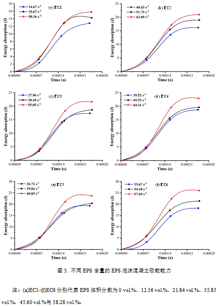 该研究体现了变废为新的废弃物处理理念,利用泡沫处理后的EPS颗粒在混凝土浆体中均匀分布的特性,有效提高了EPS泡沫混凝土的抗动态冲击与吸能能力。