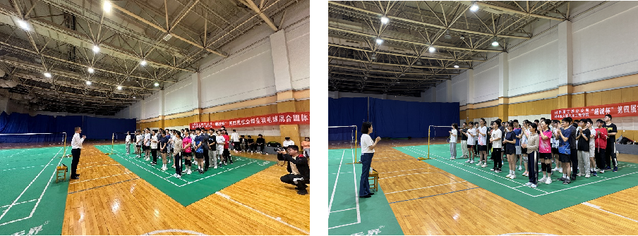 中建四局江苏分公司党委副书记李侠,土木学院党委书记王雪莅临现场并发表了热情洋溢的讲话。李侠书记首先感谢土木学院提供了校企师生全面交流的机会,表示通过此次羽毛球比赛,必将深入推进校企之间的了解,加强校企人才培养方面的协作,为进一步实现校企合作打下扎实基础。王雪书记感谢了中建四局江苏分公司对本次比赛的大力支持,表示这是校企党建和文化交流工作深度合作落在实处的又一次具体行动体现,是深入推进学校访企拓岗活动的一项重要举措,希望大家本着友谊第一,比赛第二,锻炼身体的原则参加比赛,并祝比赛圆满成功。