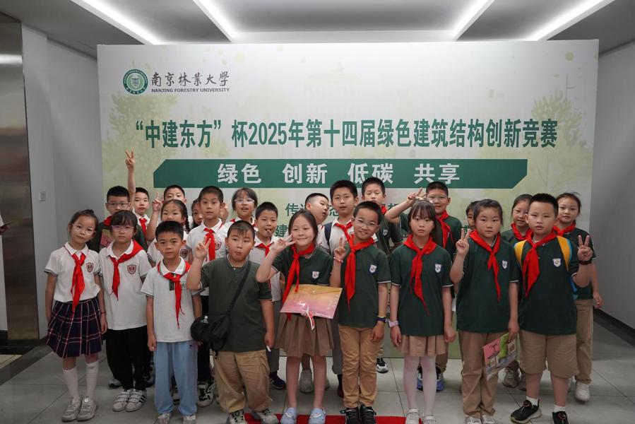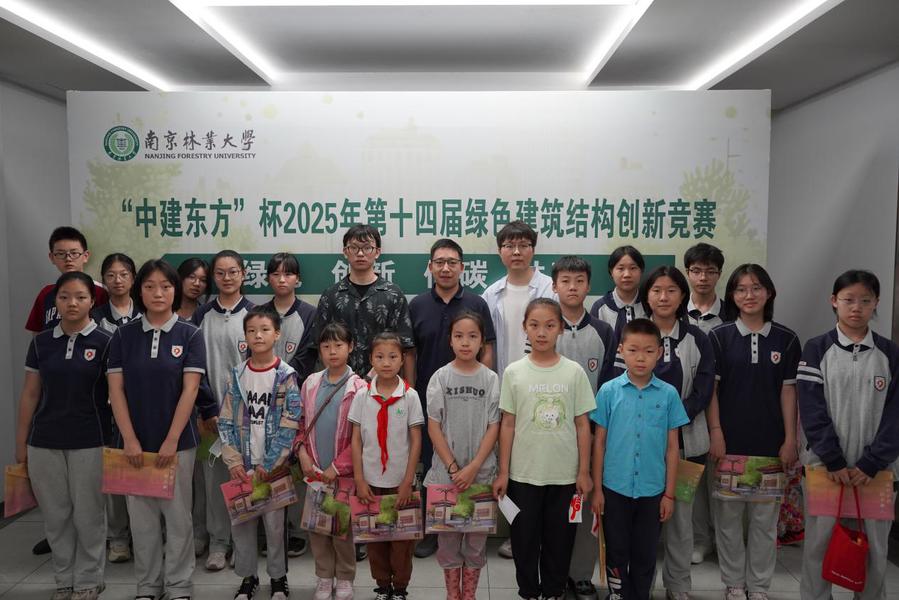 6月7日,南京林业大学“中建东方”杯2025年第十四届绿色建筑结构创新竞赛在校园内举办。本次活动在南京林业大学教务处和南京林业大学团委共同指导下,由南京林业大学土木工程学院团委主办,来自土木工程学院、机械电子工程学院等近60余名学生参赛。经过初步筛选,共有20件作品进入校赛决赛。校团委副书记(挂职)宋飞,土木工程学院团委书记周鹏,中建东方装饰有限公司幕墙中心主任张孔鹏、中建东方装饰有限公司南京分公司办公室主任宋晨阳出席本次活动。同时本次活动还吸引了来自锁金村小学、成贤街小学、滨江小学、第三十九中学的80余名中小学生观评。