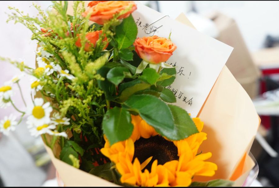 活动筹备阶段,土木工程学院学生会成员精心策划:从筛选寓意“温暖与敬意”的向日葵、小雏菊、月季等花束,到手写饱含心意的祝福卡片,再到划分学院院楼办公室、教学楼教室等多个献花点位,每一个细节都凝聚着对老师的感恩之情。