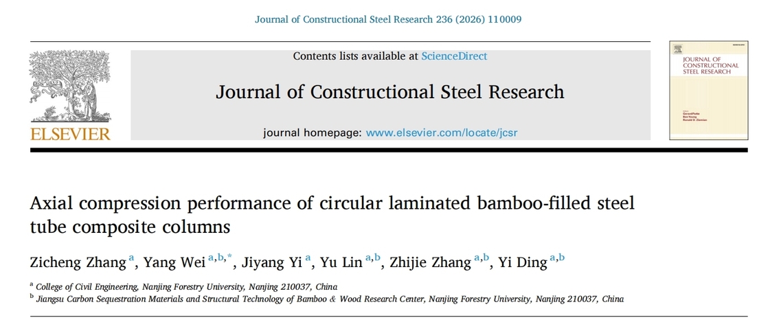 近日,我院魏洋教授课题组在国际土木工程领域知名期刊《Journal of Constructional Steel Research》(JCR分区:1区;影响因子:4.3)上发表了重要研究成果(Axial compression performance of circular laminated bamboo-filled steel tube composite columns)。南京林业大学为第一完成单位,魏洋教授为通讯作者,博士生张子诚为第一作者。成果获得了国家自然科学基金项目、江苏省自然科学基金项目等资助。
