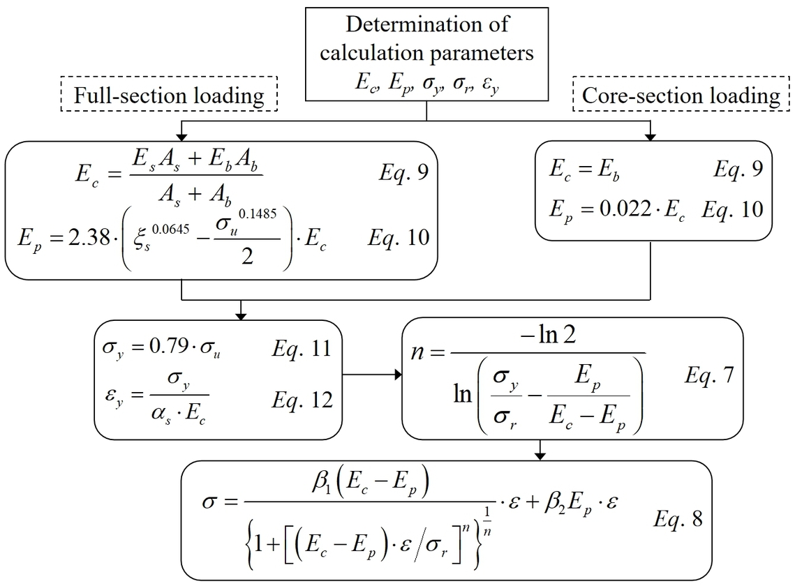 图6 圆形钢管约束胶合竹柱应力应变曲线公式推导