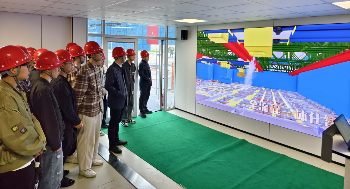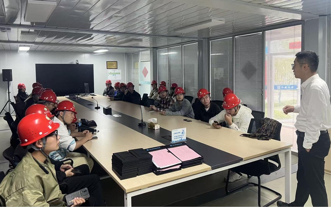 中建八局智慧科技公司智能建造部经理封帅对南林师生的到来表示了热烈欢迎,他向同学们介绍了中建八局NO.2023G05地块项目智能建造技术的应用情况,包括“天蝉”施工机器人系统、钢筋智能加工生产线、物料无人运输系统等,极大地激发了智能建造专业方向学生的学习兴趣和热情。