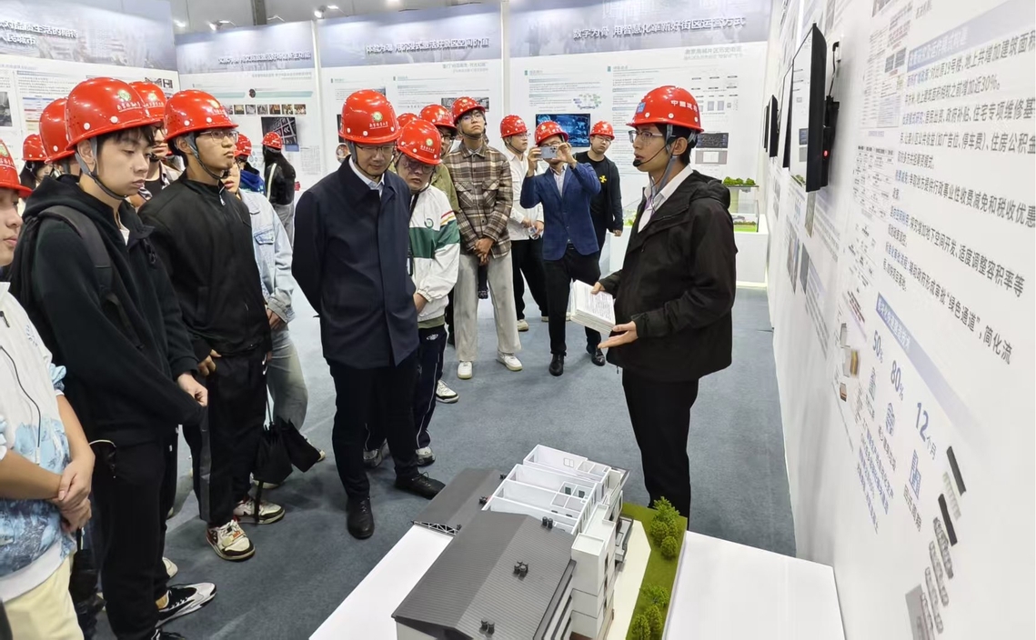 为提高智能建造专业师生对行业发展最新动态的认知、增强智能建造专业师生的使命感和责任感,2025年10月18日上午土木工程学院副院长戴兆华、智能建造系主任丁珉明、副主任陈冬冬带领智能建造系全体教师和2023级智能建造专业方向本科生应邀前往中建八局建筑科技产业创新大会现场观摩学习。