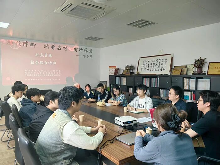 2025年10月18日,学院团委联合南京林业大学工程规划设计院有限公司(以下简称“设计院”)、中铁建工集团有限公司樱铁村1号生活生产房屋及院落集中整治工程项目经理部(以下简称“项目经理部”),在设计院会议室共同举办“‘桩’点青春,筑梦未来”产教融合讲座活动。