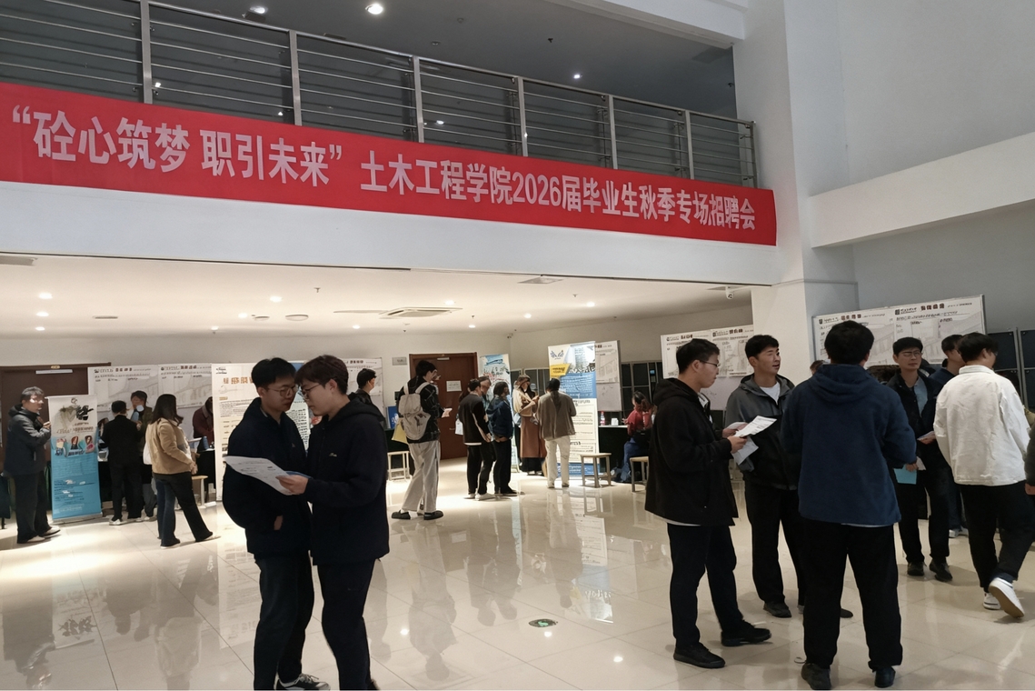 为深入贯彻落实党中央、国务院关于高校毕业生就业工作的决策部署,搭建毕业生与用人单位双向选择的优质平台,10月23日,南京林业大学土木工程学院“砼心筑梦·职引未来——2026届毕业生秋季专场招聘会”在新庄校区大学生活动中心一楼大厅成功举办。本次招聘会吸引了50余家与土木类学科高度契合的优质企业进场揽才,为学院2026届本硕博毕业生提供了就业岗位3000余个。