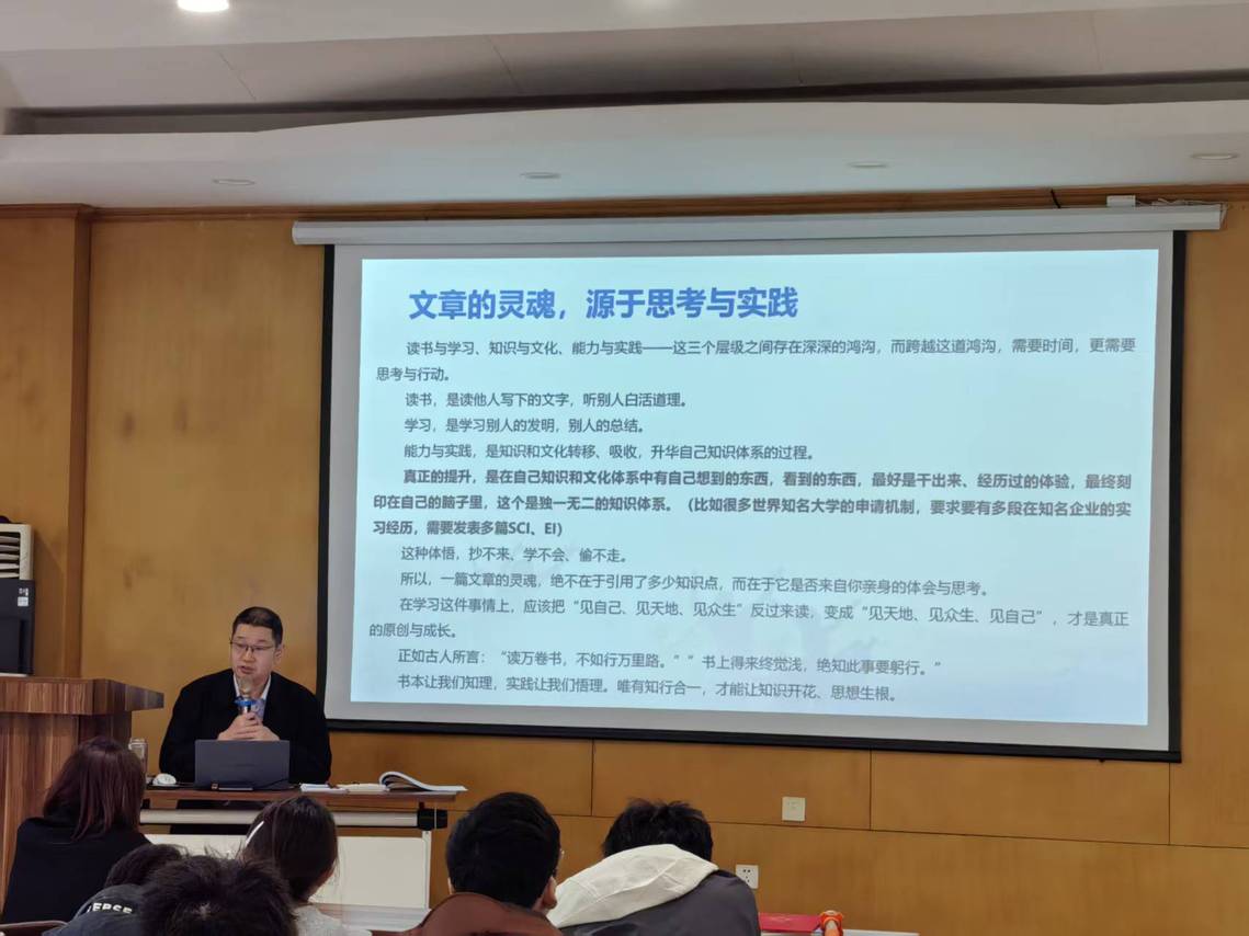 报告会前,学院院长魏洋、副院长戴兆华及相关系室教师代表与尹志清总经理在学院会议室进行了亲切座谈,双方就产学研融合、人才培养、科研合作等议题展开深入交流,为后续校企协同育人奠定良好基础。