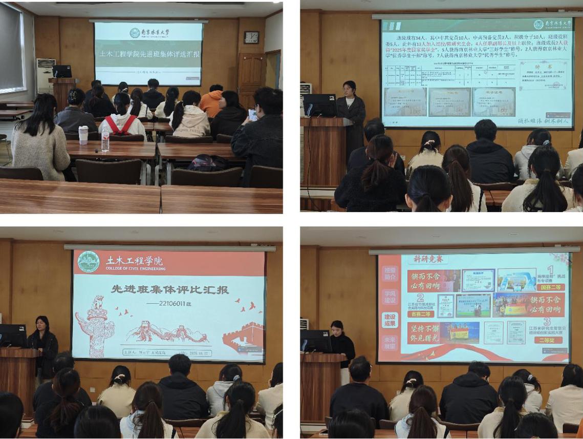 为展现班级风采,树立先进班级典型,营造积极向上的优良学风,2025年10月27日,土木工程学院在林机楼3324报告厅举办了2024-2025学年校级先进班级体评比大会,学院各年级辅导员及各年级学生代表共同出席了本次评审会。