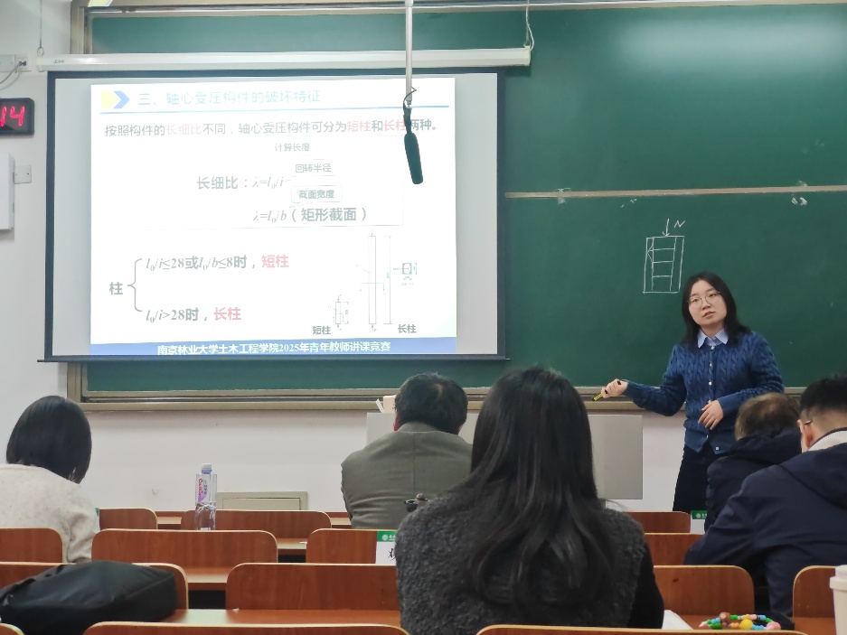 学院各系选拔和推荐了9位青年教师参加了本次讲课竞赛活动,参赛教师在赛前都做了精心的准备,比赛过程中,9位参赛教师逐一进行了15分钟的现场讲课。他们通过图文并茂的PPT课件、抑扬顿挫的语音语调,规范工整的粉笔字板书等,生动地展现了土木工程学院青年教师的教学风采。