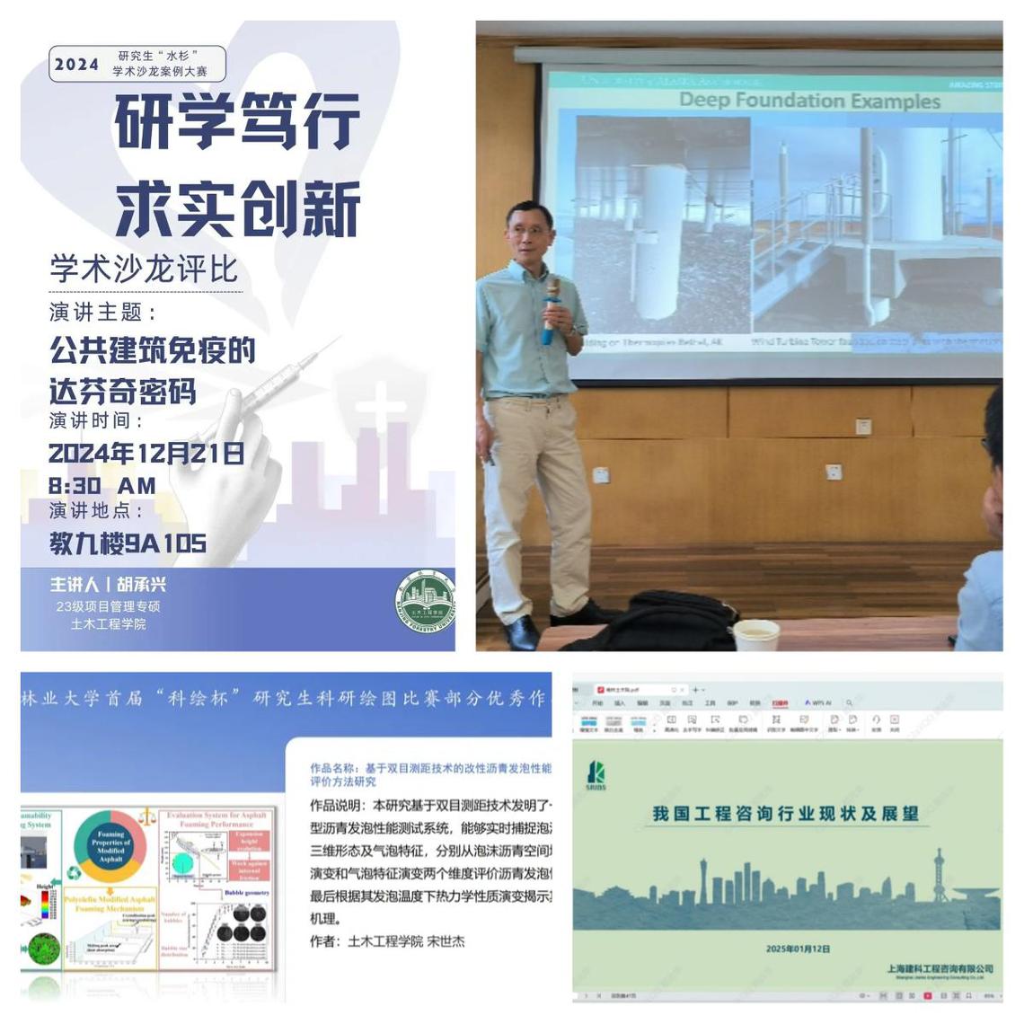2024-2025 学年,南京林业大学土木工程学院研究生会在学院悉心指导下,始终秉持 “全心全意为同学服务” 的宗旨,以组织建设、思想引领、实践服务、学术创新和文化活动为工作主线,开展了一系列丰富多彩的活动,切实发挥了学生组织联系广大研究生的桥梁和纽带作用。