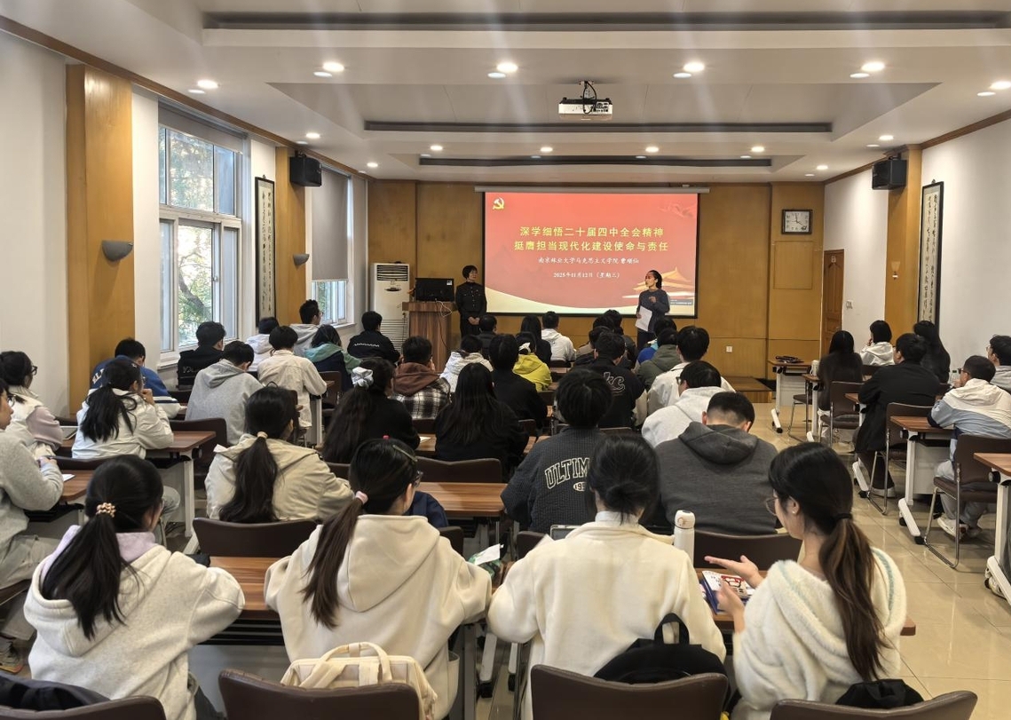 2025年11月12日,学院分党校在3324报告厅举办2025年新党员培训讲座。活动特邀马克思主义学院曹顺仙教授,为学院新党员作题为“深学细悟二十届四中全会精神,挺膺担当现代化建设使命与责任”专题党课。讲座由学院党委副书记、副院长柳任飞主持。