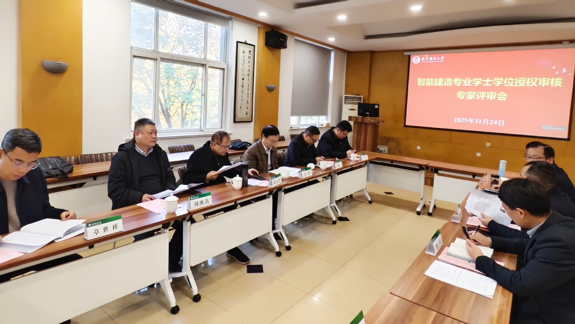 2025年11月24日下午南京林业大学智能建造专业学士学位授权审核专家评审会在土木工程学院报告厅举行,东南大学土木工程学院郭正兴教授、南京航空航天大学民航学院吴瑾教授、河海大学土木与交通学院周继凯教授、南京工业大学土木工程学院副院长岳健广教授、江苏华通工程技术有限公司总经理章世祥研究员级高工、南京中建八局智慧科技有限公司总经理叶嵩高级工程师应邀担任评审专家。南京林业大学教学评估办公室主任、高教所所长周统建,土木工程学院院长魏洋、副院长戴兆华、智能建造系主任丁明珉、副主任陈冬冬以及智能建造系教师代表参加了本次会议,会议由戴兆华副院长主持。