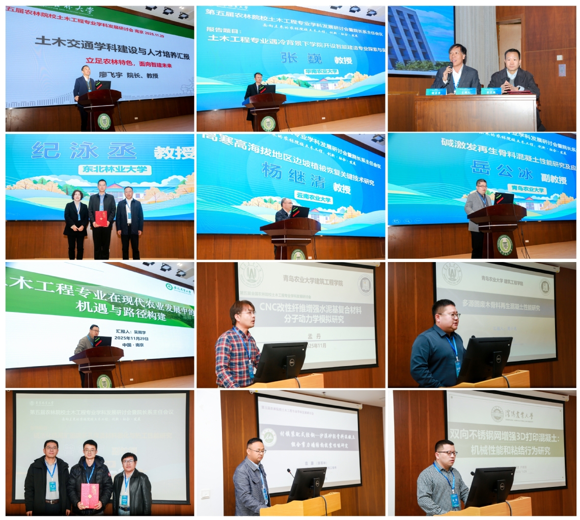 2025年11月28—30日,由农林院校土木工程专业学科联盟主办、南京林业大学承办的“第五届农林院校土木工程专业学科发展研讨会暨院长系主任会议”在南京林业大学新庄校区隆重召开。来自全国40余所农林高校的院长系主任及骨干教师共计100余人齐聚一堂,围绕“面向未来的农林院校土木工程:创新·融合·发展”这一主题,共商土木专业学科高质量发展新篇章。