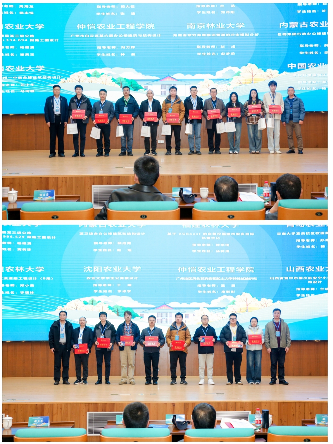 会议同期举行了联盟高校相关竞赛颁奖仪式,来自南京林业大学、内蒙古农业大学等高校的33份作品分获“第二届全国农林院校本科生毕业设计创新大赛”特、一、二、三等奖;来自中国农业大学、黑龙江八一农垦大学等高校的14份作品获 “第四届美丽乡村·土木工程技术与创意设计大赛”一、二、三等奖。充分展现了农林土木学子服务乡村振兴的创新潜能与实践风采。
