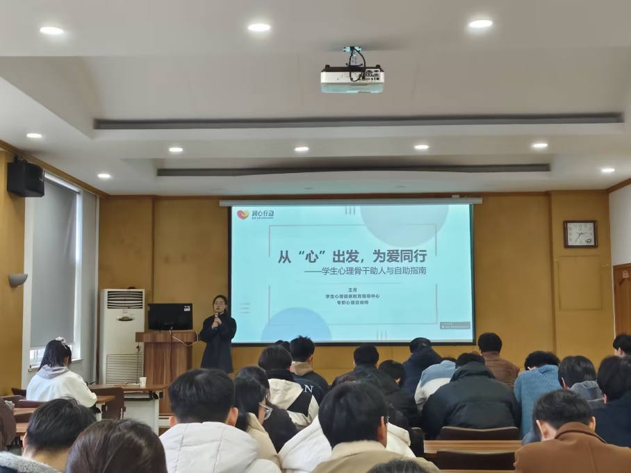 为提高我院心理健康教育水平,提升学生骨干心理健康工作技能,2025年12月19日,学院邀请我校心理中心专职咨询师王月老师于林机楼3324报告厅开展心理健康知识辅导讲座,学院各年级班级心理委员及学生会心协成员到场参加。