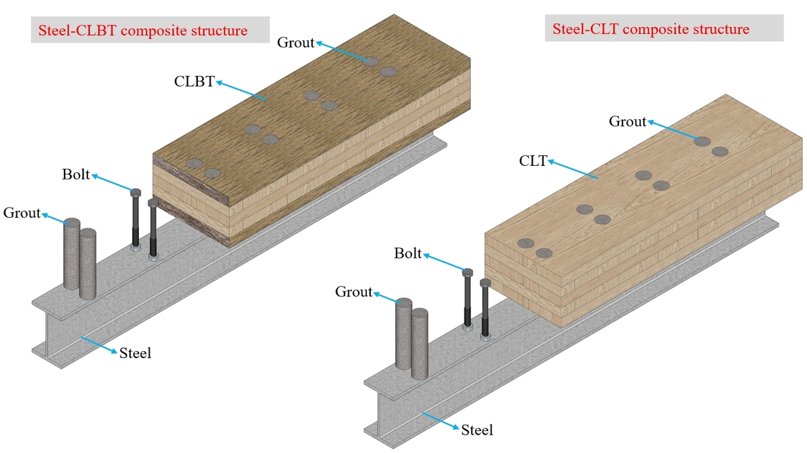 灌浆螺栓连接的钢-CLBT和钢-CLT组合梁