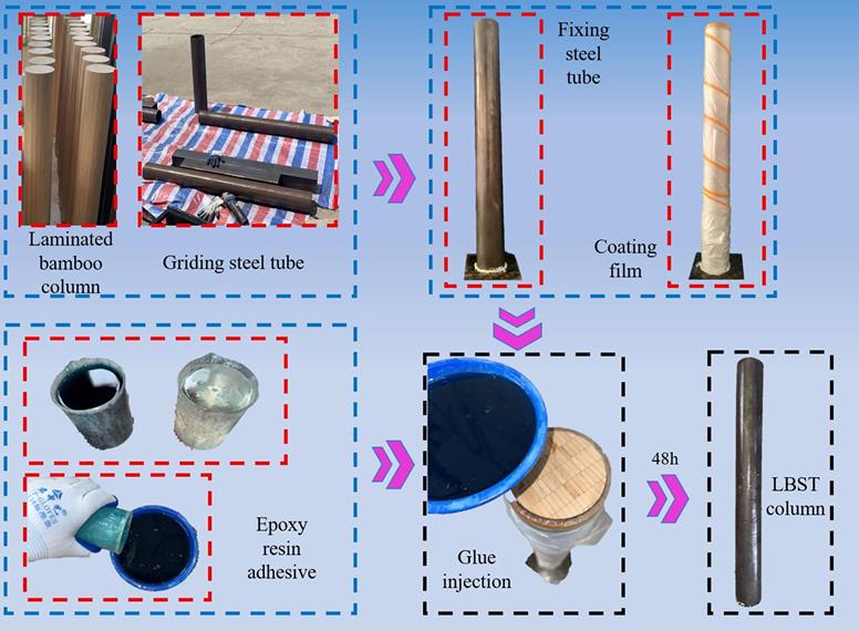 本研究借鉴钢管混凝土结构的原理,提出了一种钢管约束竹集成材的新型组合结构形式——内置竹集成材的钢管复合柱(LBST)。该结构通过外层钢管对核心竹材施加有效约束,显著提升竹材的力学性能,兼具绿色低碳、高承载力与良好延性等优势。然而,该类结构在偏心荷载下的复杂受力行为,尤其是二阶效应的影响,尚缺乏系统的理论支撑与设计依据。