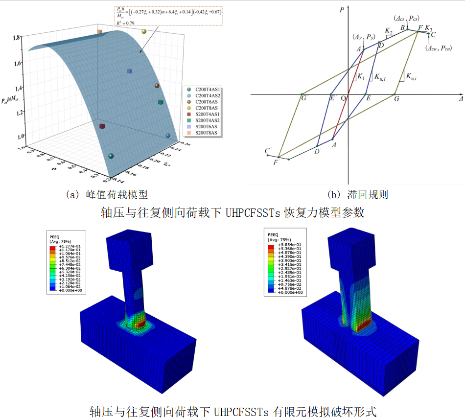 该研究证实,UHPCFSSTs在压弯复合受力状态下具备优良的协同变形与耗能能力,所建立的抗震恢复力模型为其性能化设计提供了关键理论工具。成果不仅为海洋工程、沿海及高湿盐雾等严苛环境下的工程结构应用提供了可靠依据,更有力推动了“高性能”与“长寿命”目标在工程结构中的协同实现。