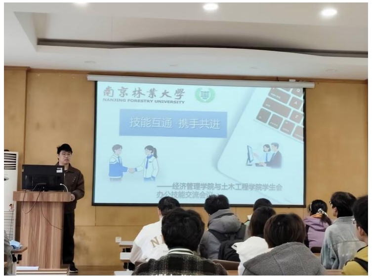 为促进优势互补,切实提升学生骨干的综合办公素养,2026年3月18日下午,一场主题为“技能互通·携手共进”的学生会办公技能交流会在林机楼3324会议室成功举办。本次活动由土木工程学院学生会与经济管理学院学生会联合组织,两院各十名骨干成员齐聚一堂,本次活动聚焦于实际工作中高频、核心的办公技能,通过经验分享与思维碰撞,旨在搭建一个务实、高效的学习共享平台,共同夯实服务同学的能力根基。