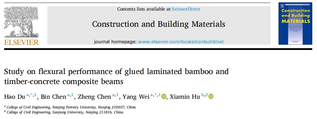 近日,我院杜浩老师以第一作者在土木工程领域国际著名期刊《Construction and Building Materials》(Top期刊)和《Journal of Building Engineering》(Top期刊)发表了胶合竹木-混凝土组合结构的研究论文,我院魏洋教授为共同通讯作者,我校为第一完成单位。研究成果得到了国家自然科学基金的资助。