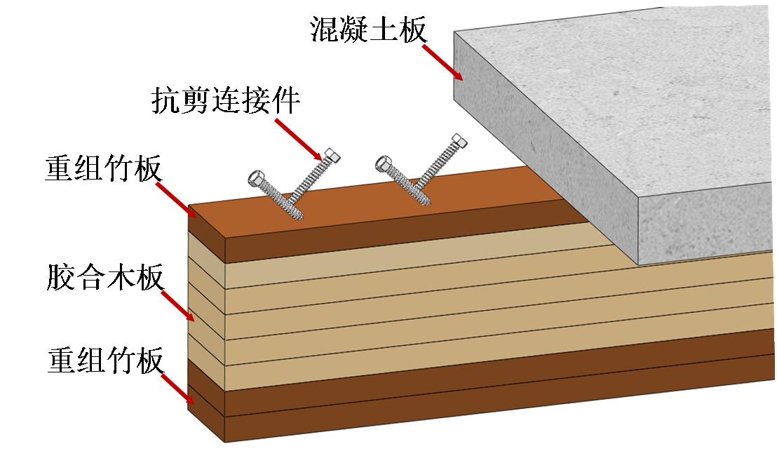 木-混凝土组合梁通过抗剪连接件将木梁与混凝土板组合成一个共同受力的整体。与传统的木梁相比,木-混凝土组合梁的受力性能、振动舒适度、隔声性能和抗火性能等均得到了提高。针对木-混凝土组合梁存在变形较大、易发生脆性受拉破坏以及不能充分利用材料强度等问题,论文提出了新型胶合竹木-混凝土组合梁,根据竹木材料的力学特性,将重组竹板布置在胶合木构件的拉压区,以充分利用竹材强度高、韧性好的优点,从而组合成受力性能更加优越的胶合竹木-混凝土组合梁。采用试验研究和理论分析的方法对胶合竹木-混凝土组合梁的界面连接性能和受弯性能进行了研究。